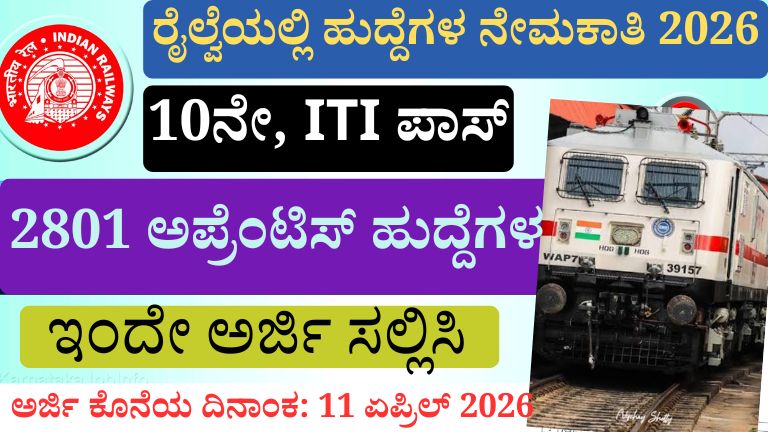 ರೈಲ್ವೆಯಲ್ಲಿ 2801 ಹುದ್ದೆಗಳ ಬೃಹತ್ ನೇಮಕಾತಿ 2026: 10ನೇ, ITI ಪಾಸ್ ಮಾಡಿದವರಿಗೆ ದೊಡ್ಡ ಅವಕಾಶ