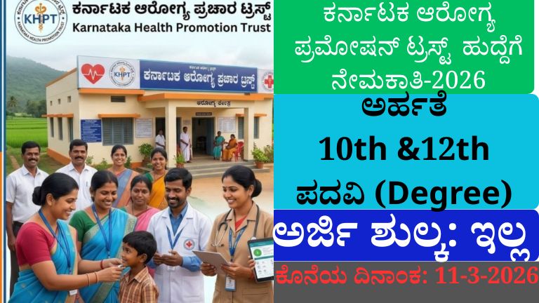 ಕರ್ನಾಟಕದಲ್ಲಿ ಉತ್ತಮ ಉದ್ಯೋಗದ ಹುಡುಕಾಟದಲ್ಲಿರುವ ಅಭ್ಯರ್ಥಿಗಳಿಗೆ ಇದೀಗ ಒಂದು ಸುವರ್ಣ ಅವಕಾಶ ದೊರಕಿದೆ. ರಾಜ್ಯದಲ್ಲಿ ಆರೋಗ್ಯ ಮತ್ತು ಸಾಮಾಜಿಕ ಅಭಿವೃದ್ಧಿಗೆ ಪ್ರಮುಖವಾಗಿ ಕಾರ್ಯನಿರ್ವಹಿಸುತ್ತಿರುವ ಕರ್ನಾಟಕ ಆರೋಗ್ಯ ಪ್ರಮೋಷನ್ ಟ್ರಸ್ಟ್ (KHPT) ಸಂಸ್ಥೆ ಹೊಸ ನೇಮಕಾತಿ ಅಧಿಸೂಚನೆಯನ್ನು ಪ್ರಕಟಿಸಿದೆ.