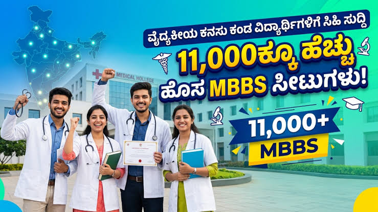 2026ರ ಶೈಕ್ಷಣಿಕ ವರ್ಷದಲ್ಲಿ ದೇಶದಾದ್ಯಂತ ಸುಮಾರು 11,000ಕ್ಕೂ ಹೆಚ್ಚು ಹೊಸ MBBS ಸೀಟುಗಳು ಸೇರ್ಪಡೆಯಾಗಲಿವೆ. ಇದರಿಂದ ವೈದ್ಯಕೀಯ ಶಿಕ್ಷಣ ಪಡೆಯಲು ಬಯಸುವ ವಿದ್ಯಾರ್ಥಿಗಳಿಗೆ ಹೆಚ್ಚಿನ ಅವಕಾಶಗಳು ಲಭ್ಯವಾಗಲಿವೆ.