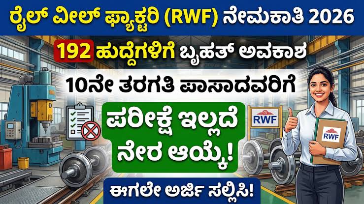 ರೈಲ್ ವೀಲ್ ಫ್ಯಾಕ್ಟರಿ ನೇಮಕಾತಿ 2026: 192 ಅಪ್ರೆಂಟಿಸ್ ಹುದ್ದೆಗಳು – ಪರೀಕ್ಷೆ ಇಲ್ಲದೆ ನೇರ ಆಯ್ಕೆ, SSLC + ITI ಸಾಕು! ರೈಲ್ವೆ ಇಲಾಖೆಯಲ್ಲಿ ಸರ್ಕಾರಿ …
