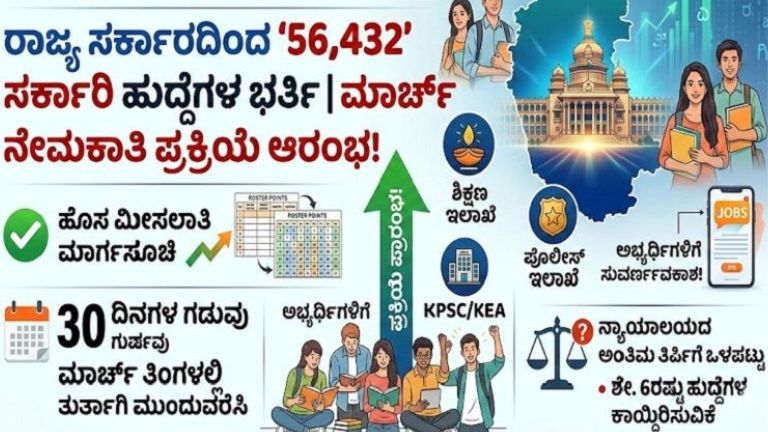 BIGNEWS: ಕರ್ನಾಟಕ ಸರ್ಕಾರದ ಬೃಹತ್ ನೇಮಕಾತಿ 2026 – 56,432 ಹುದ್ದೆಗಳ ಭರ್ತಿ ಪ್ರಕ್ರಿಯೆ ಆರಂಭ ಬೆಂಗಳೂರು: ಸರ್ಕಾರಿ ಉದ್ಯೋಗಕ್ಕಾಗಿ ವರ್ಷಗಳಿಂದ ಸಿದ್ಧತೆ ನಡೆಸುತ್ತಿರುವ ಲಕ್ಷಾಂತರ ಯುವಕರಿಗೆ …