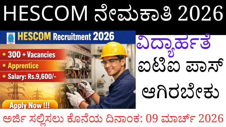 ⚡ HESCOM Recruitment 2026: ITI ಪಾಸಾದವರಿಗೆ ಸುವರ್ಣಾವಕಾಶ! ಪ್ರತಿ ತಿಂಗಳು ₹9,600 ಸ್ಟೈಫಂಡ್ ಸರ್ಕಾರಿ ಉದ್ಯೋಗದ ಕನಸು ಕಾಣುತ್ತಿರುವ ಐಟಿಐ ಎಲೆಕ್ಟ್ರಿಷಿಯನ್ ಅಭ್ಯರ್ಥಿಗಳಿಗೆ ಇದೀಗ ಅತ್ಯಂತ …