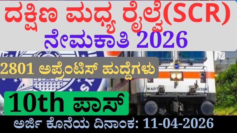 SCR Railway Recruitment 2026 ಎನ್ನುವುದು ದಕ್ಷಿಣ ಮಧ್ಯ ರೈಲ್ವೆ ವಿಭಾಗದಲ್ಲಿ ಖಾಲಿ ಇರುವ ವಿವಿಧ ಅಪ್ರೆಂಟಿಸ್ ಹುದ್ದೆಗಳ ಭರ್ತಿಗಾಗಿ ನಡೆಸಲಾಗುತ್ತಿರುವ ನೇಮಕಾತಿ ಪ್ರಕ್ರಿಯೆ. ಈ ನೇಮಕಾತಿಯನ್ನು ರೈಲ್ವೆ ನೇಮಕಾತಿ ಕೋಶ (RRC) ಮೂಲಕ ನಡೆಸಲಾಗುತ್ತಿದೆ.