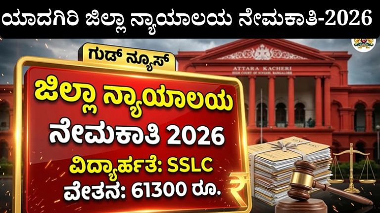 10ನೇ ಪಾಸ್ ಆದವರಿಗೆ ಸರ್ಕಾರಿ ಉದ್ಯೋಗ: ಯಾದಗಿರಿ ಜಿಲ್ಲಾ ನ್ಯಾಯಾಲಯದಲ್ಲಿ 14 ಹುದ್ದೆಗಳು – ₹61,300 ವೇತನ!